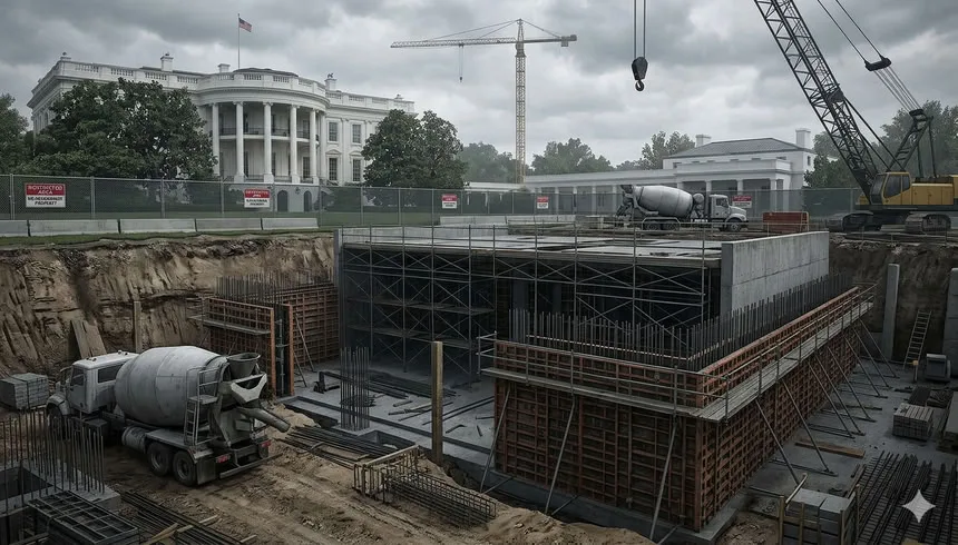 Вместо бального зала сооружается высокотехнологичное убежище для главы государства. Проект оценивается в 400 миллионов долларов. Ранее Трамп заявлял, что перестройка зала необходима для приёма высокопоставленных гостей, так как места в Белом доме якобы недостаточно. Администрация Трампа подала апелляцию на решение суда.