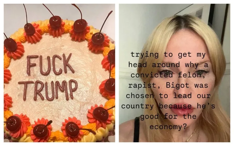 Мадонна удивила поклонников своей резкой реакцией на победу Дональда Трампа в президентских выборах 2024 года. В четверг, вскоре после оглашения результатов, певица разместила в социальных сетях свое мнение, подчеркнув его необычным образом: она показала торт, украшенный надписью с едкой критикой нового президента.