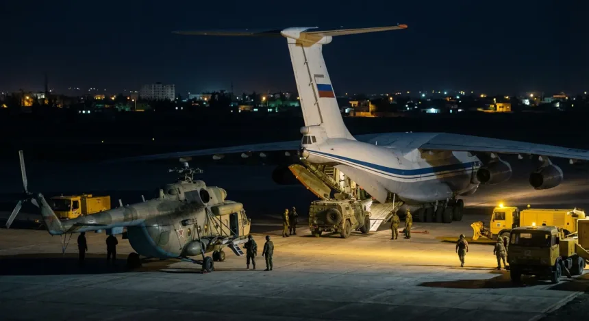 Telegram-каналы и телеканал Kurdistan24 публикуют кадры погрузки техники в самолёт Ил-76 и подготовки к транспортировке вертолёта Ми-8 со снятыми лопастями. Официального подтверждения от Минобороны России пока нет.