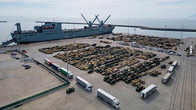 В этом порту техника из США перегружается для доставки в Восточную Европу. Об этом сообщает Regnum. В частности, оттуда часть этой техники поступает и для потребностей армии Украины. Сейчас вывезти её из порта не представляется возможным.