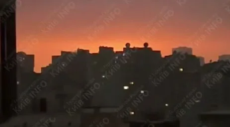 Кадры, опубликованные популярным Telegram-каналом «Київ ІНФО», фиксируют момент удара с детализацией. На записи отчетливо видно яркое зарево, которое по интенсивности света сравнимо с эффектным закатом. Небо озаряется оранжево-красным свечением.