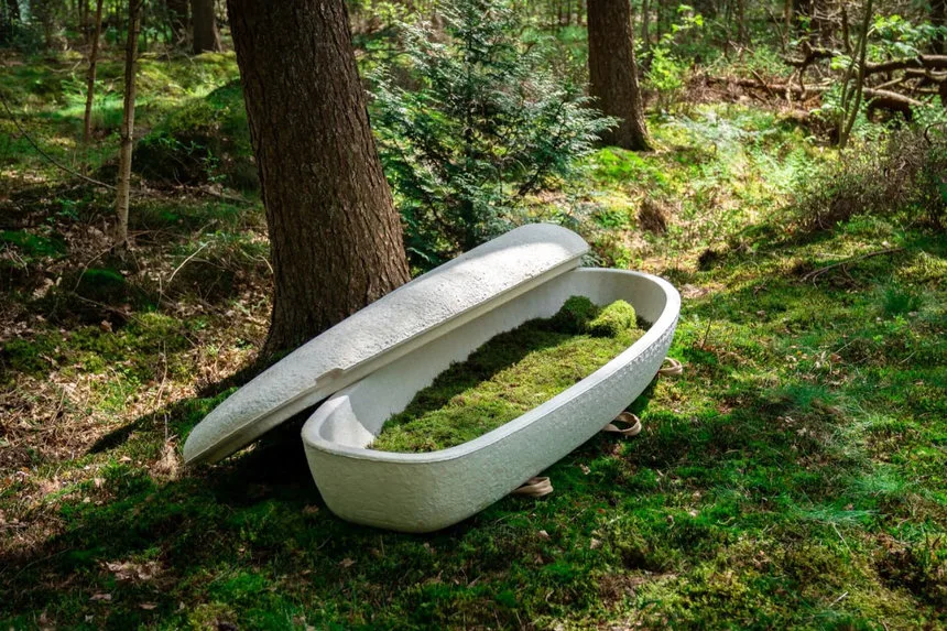 Голландский стартап Loop Biotech разработал экологичный гроб Loop Living Cocoon, полностью созданный из грибного мицелия и переработанных конопляных волокон. На выращивание конструкции уходит около семи дней, при этом в процессе не используются клей, металл или химические компоненты.