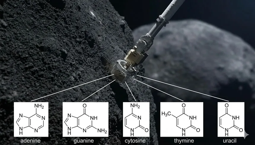 В собранном материале обнаружены все базовые «строительные блоки» для формирования жизни. В списке найденных нуклеотидов значатся аденин, гуанин, цитозин, тимин и урацил. Первые четыре необходимы для ДНК, а последний — для РНК, что в совокупности образует основу жизни.
