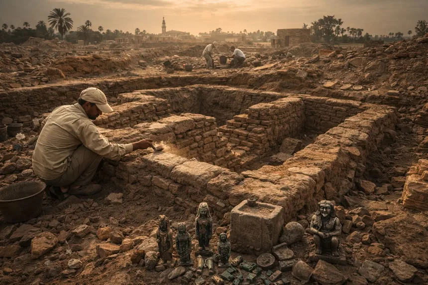 В ходе раскопок ученые нашли коллекцию ритуальных предметов, включая амулеты с изображениями богов Исиды, Гора и Ваджет. Особый интерес вызвала гибридная фигурка, сочетающая черты бабуина, сокола и бога-карлика Патикоса.