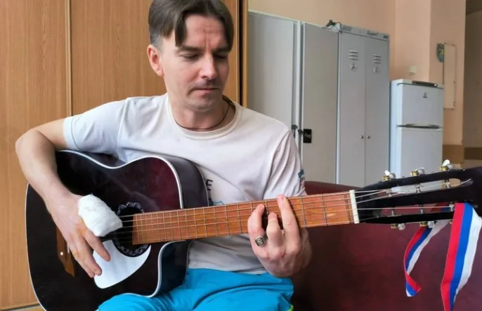 Во время выписки военнослужащий сыграл на гитаре прямо в больнице — инструмент ему принесли волонтеры. Теперь его ждет реабилитация, после которой он намерен вернуться в зону боевых действий.