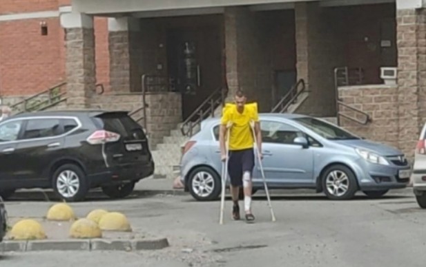 В Петербурге жители города засняли доставщика еды, который передвигался на костылях. Мужчина утверждает, что подрабатывает в компании на больничном.