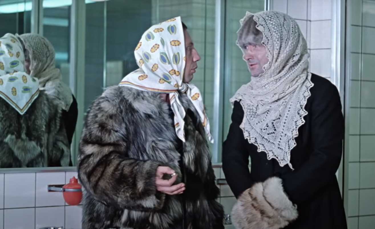 В этой сцене герой Савелия Крамаров «умудряется» переодеть платок. В зале на нем платок с одним рисунком, но после пары кадров, у входа в помещение, голова повязана совершенно другой тканью. Также в сцене на улице на герое Крамарова мы видим тот же «уличный» платок.