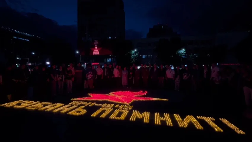 В Краснодарском крае вечером 21 июня картины, составленные из свечей, зажгли также в Городах воинской доблести и воинской славы.