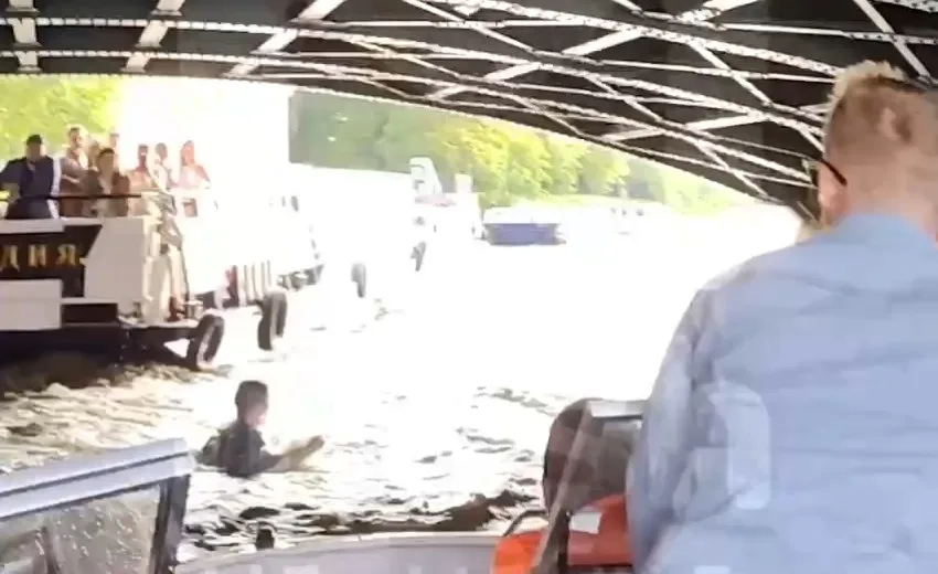 Видеозапись сняли туристы, которые находились на соседнем катере. На видео запечатлено, как открытое судно с людьми на борту заходит под низкий мост. Один из высоких парней слишком увлекся, поднял руки и задел арматуру моста. По инерции его выбросило с судна, и мужчина упал в воду. Окружающие отреагировали на падение криками ужаса.