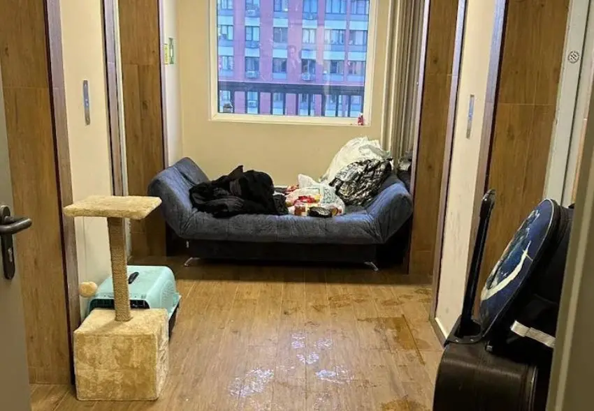 На снимках, которые были сделаны с места жительства, видны диван, матрас, шкаф и личные вещи. Также имеются «следы» проживания домашних животных: лоток, домик-когтеточка и другие.