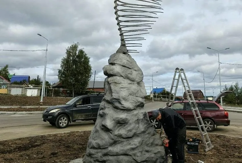 «Задумка авторов такая: скульптура символизирует шёпот Уральских гор, имитируя скалы и ветры, которые ведут диалог и рождают стихию на границе Европы и Азии», — уточняется в публикации.