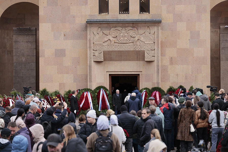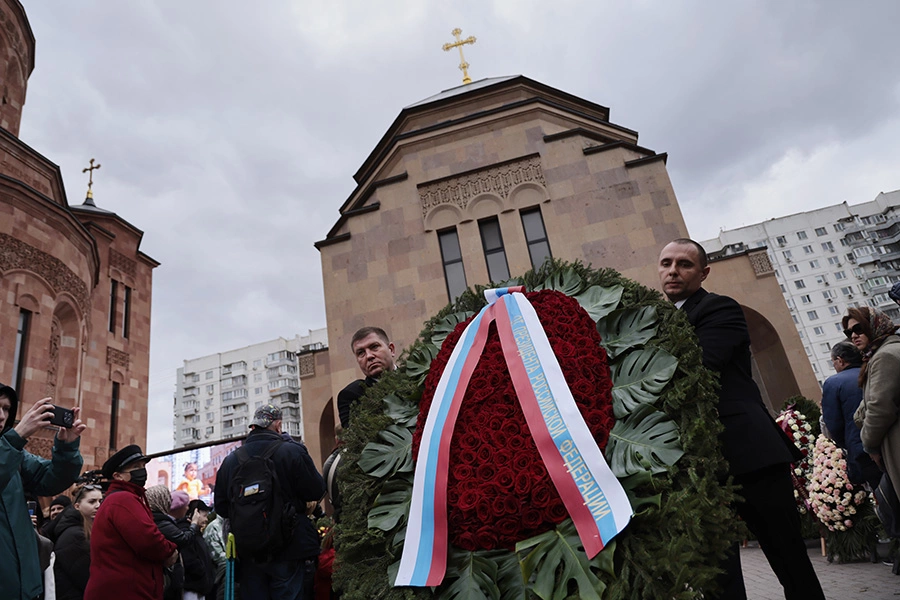Режиссер и телеведущий Тигран Кеосаян умер в возрасте 59 лет. Прощание с ним проходило в Армянской церкви на Олимпийском проспекте в Москве. РБК показал фото с места событий.