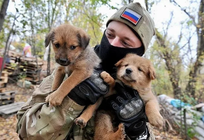 По его словам, в освобождённых населённых пунктах можно встретить разных животных — кошек, собак, коз, коров и даже лошадей. В одном из таких мест бойцы обнаружили пару собак, у которых как раз появился щенок. Его приютили, и теперь он постоянно сопровождает солдат при переездах с позиции на позицию, пишут РИА Новости.