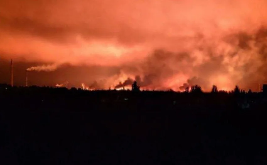 Очевидцы сообщают, что в районе прилетов наблюдается сильный пожар. Над Кременчугом стоит зарево от огня.