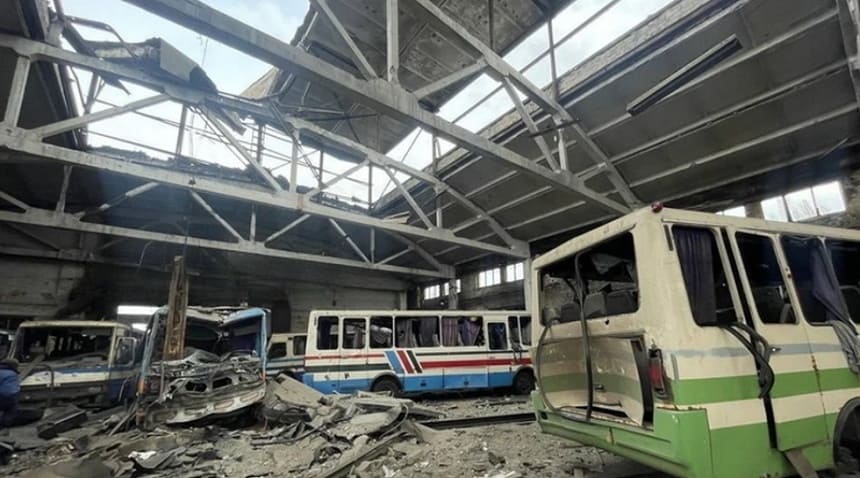 «Русская весна» опубликовала видео, на котором разрушенное до обломков здание волновахского «Авто-экспресс»: убитый водитель предприятия и десятки покорёженных автобусов. Удар по гражданскому объекту нанесли ВСУ американскими HIMARS около пяти утра 9 марта.