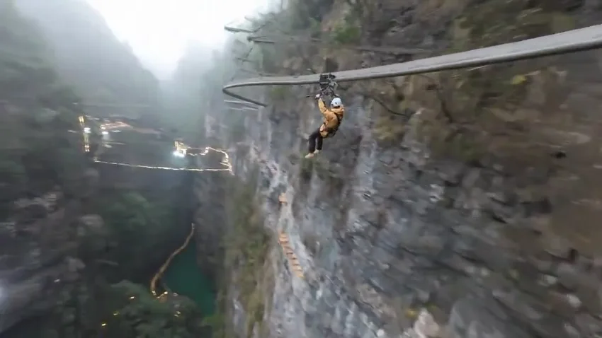 Российские туристы и экстремалы в соцсетях обсуждают новый аттракцион, от одного вида на который захватывает дух: в Китае запустили зиплайн, который проходит над одним из самых глубоких карстовых провалов в мире, сообщил телеграм-канал «Плохие новости».