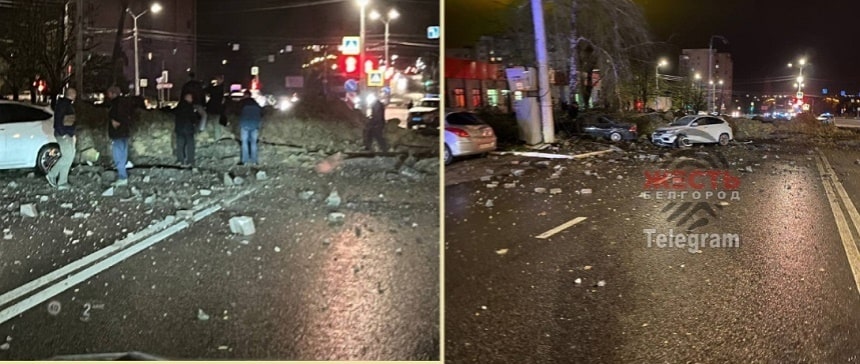 За ситуацией подробно наблюдают авторы ТК Белгород №1. Они сообщают: как минимум, повреждены несколько машин. Сейчас на месте инцидента работают спецслужбы, они отгоняют зевак от оцепленного места с воронкой.