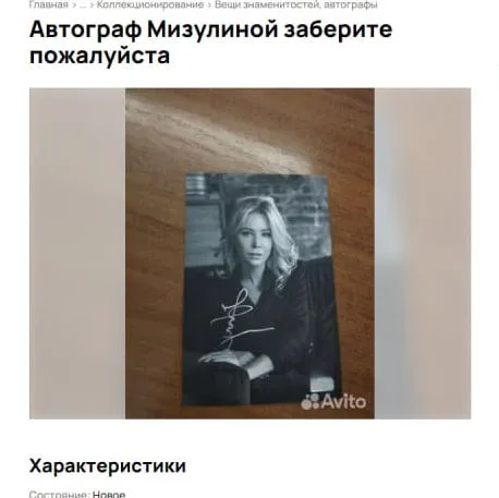 В новом объявлении автограф предлагается за 200 рублей. Продавец утверждает, что подпись подлинная. К объявлению прикреплена фотография, которая совпадает со снимком из предыдущей публикации.