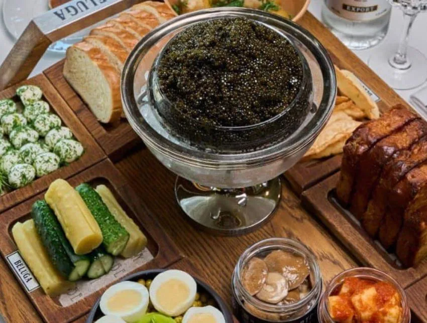 «Завтрак бурлака» появился в «Белуге» в начале октября 2024 года. тогда он стоил 72 тысячи рублей и включал килограмм осетровой икры, литр водки, картошку с укропом, маринованные грибы, малосольные огурцы, яйца с майонезом, кильку, расстегай и другие деликатесы.