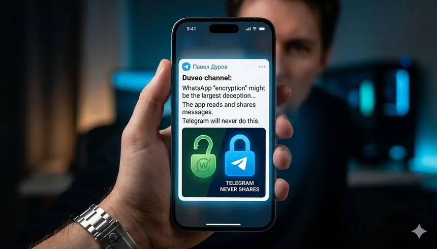 Дуров заявил, что WhatsApp, принадлежащий Meta (признана в России экстремистской и запрещена), не обеспечивает заявленной безопасности. Приложение, по его утверждению, читает сообщения пользователей и передает их третьим лицам.