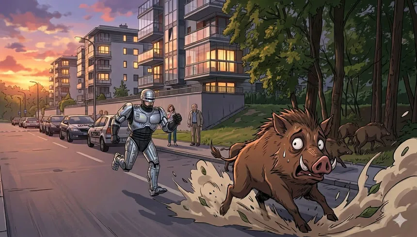 В Варшаве зафиксирован необычный инцидент: человекоподобный робот Unitree G1 погнался за стадом диких кабанов. Животные вышли на городскую парковку 12 апреля, после чего робот попытался согнать их с асфальта. Об этом сообщил Telegram-канал ТАСС со ссылкой на телеканал TVP. Робот, получивший имя Эдвард Варчоки, передвигался на скейтборде и бегал трусцой, стараясь направить животных.