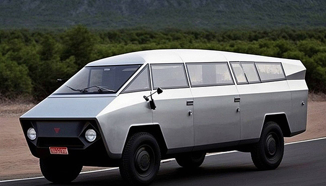 Российскую модель микроавтобуса выполнили в стиле американского электрического пикапа Tesla Cybertruck. Он был представлен два года назад, но так и не попал в серийное производство. Тем не менее, произвел немало медийного шума в СМИ и социальных сетях.