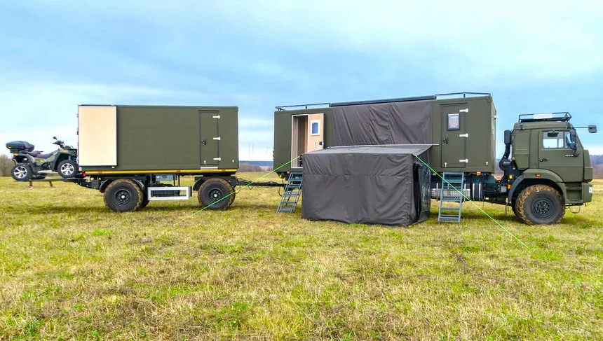 Нижегородская компания «Волгатрейд» представила уникальный экспедиционный автодом, построенный на базе длиннобазного полноприводного грузовика КАМАЗ-43118. Как сообщает издание Daily-Motor.ru, проект ориентирован на длительные путешествия в условиях сурового климата и бездорожья. Конструкция представляет собой полноценный жилой автопоезд, дополненный специальным прицепом для перевозки техники.