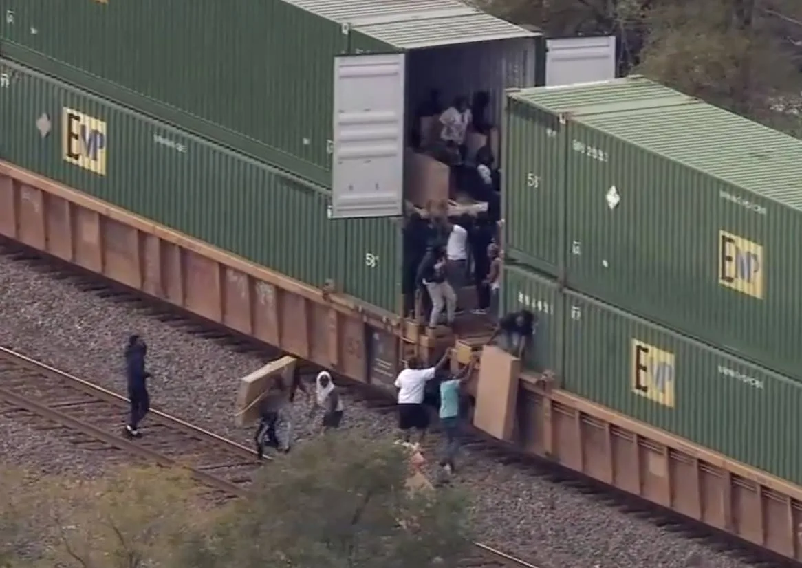 В Южном Остине, Чикаго, группа мародеров ограбила товарный поезд с ценными грузами. Инцидент, произошедший на глазах местных жителей, был запечатлен на видео: десятки людей вытаскивали коробки с товарами из поезда и грузили их в свои автомобили.
