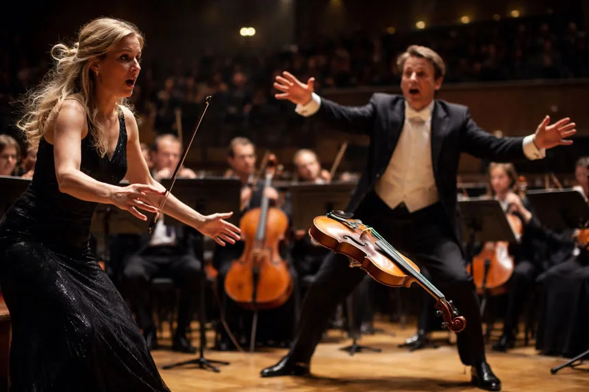 Необычный инцидент произошел на концерте симфонического оркестра в финском городе Лахти. В четверг, во время выступления в филармоническом концертном зале, дирижер Мэтью Холлс случайно выбил из рук солистки скрипку. Этот инструмент, созданный итальянским мастером Guadagnini, оценивается в сумму более миллиона евро. Уникальные подробности этого редкого происшествия, случившегося прямо на сцене во время игры, сообщает источник Helsingin Sanomat.
