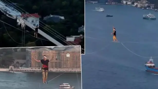 Акробат Яан Руз из Эстонии стал первым человеком в мире, который смог перейти по натянутому канату с одного континента на другой, пишет РИАН со ссылкой на Hürriyet.