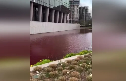 Активисты Greenpeace (Генеральная прокуратура РФ признала нежелательной деятельность организации в России) вылили 300 литров красного красителя в пруд возле посольства США в Лондоне, протестуя против поставок американского оружия Израилю.