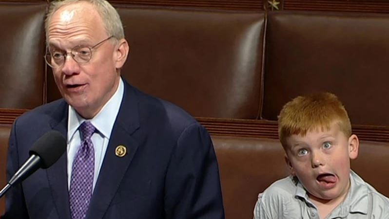 В США сын конгрессмена быстро стал новым мемом и звездой социальных сетей. Мальчик недавно перестал ходить в детский сад и всю эту неделю находится со своим отцом-конгрессменом.