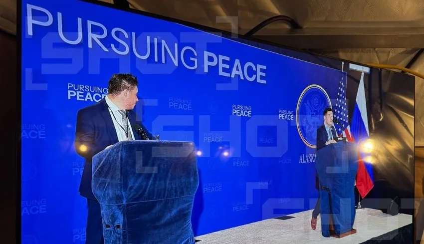 Слоганом встречи президентов Владимира Путина и Дональда Трампа стала фраза «Стремление к миру», лозунг выбрали представители США и разметили на баннерах зала в Анкоридже. Об этом сообщает Telegram-канал Shot.