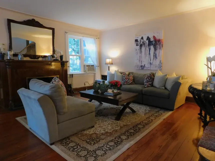 Теперь отреставрированный особняк площадью 2,500 кв. футов дополнен современными элементами — «умными» замками, санузлами и обновлённой кухней с выходом в зимний сад.