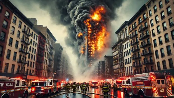 Пожарные расчеты Нью-Йорка борются с огнем, задействованы брандспойты и водяные вышки, но пламя пока не удается полностью взять под контроль. Причина возгорания пока неизвестна, но рассматриваются версии о неисправности электропроводки или взрыве бытового газа.