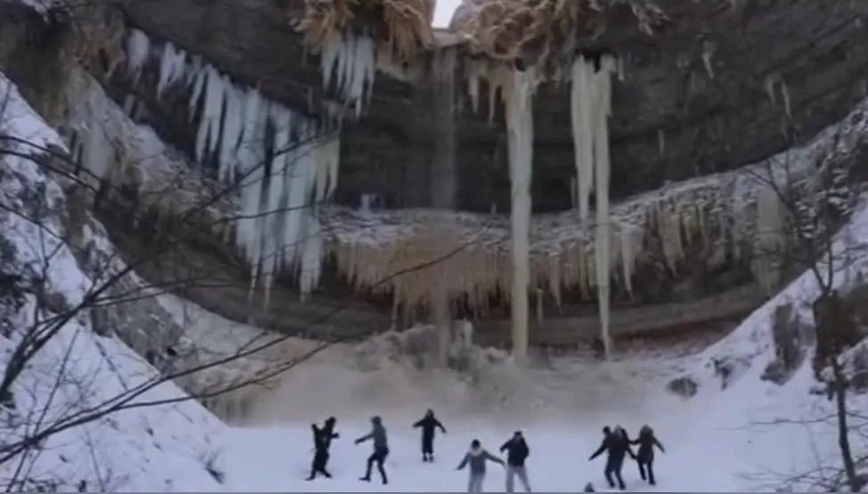 В Эстонии у популярного туристического водопада Валасте произошло обрушение ледяных масс, под которое едва не попали гулявшие рядом люди, включая детей.