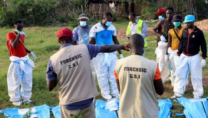 На протяжении недели кенийские поисковые службы раскапывали разбросанные по лесу района Малинди неглубокие могилы в поисках останков и прочёсывали местность в поисках выживших.