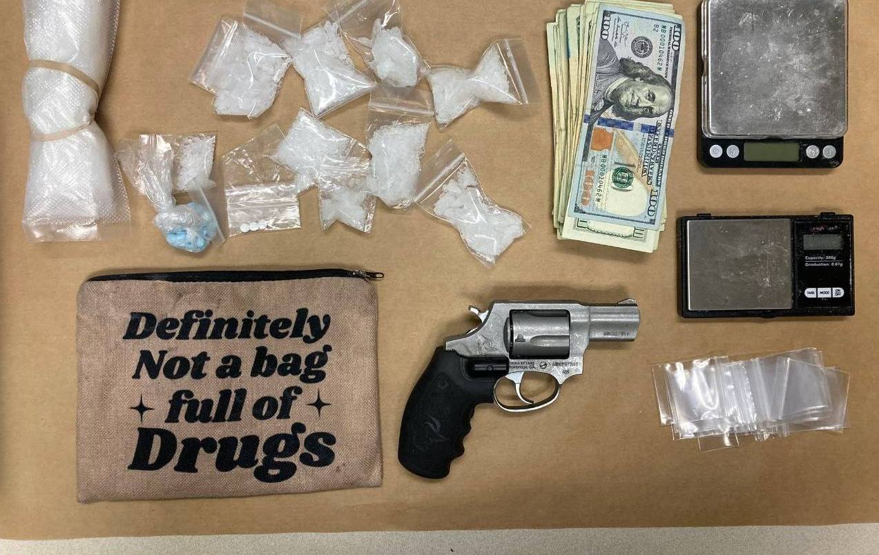 Подозреваемые — Миа Баггенстос и Реджинальд Ламонт Рейнольдс — были остановлены на юго-востоке Портленда, когда патрульные обратили внимание на автомобиль, числившийся в угоне. Полицейские провели обыск машины, где и нашли небольшую косметичку с провокационной надписью. Внутри находилось более 10 граммов фентанила и метамфетамина, а также наличные деньги, револьвер и весы, которые, как предполагается, использовались для фасовки наркотиков.