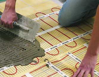 В качестве такой системы может выступать прогревающий кабель, который укладывается сразу в стяжку пола. Под плитку могут быть установлены нагревательные маты, которые обязательно закрываются плиточным клеем. Популярным является и инфракрасный пол.