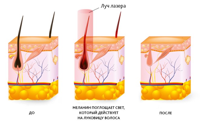 Суть данного метода состоит в следующем: энергия, то есть, тепло, создаваемое лазером подается на кожный покров. Но все дело в том, что это происходит «избирательно», то есть, не попадая непосредственно на кожу. Лазер поглощается веществом (пигментом), содержащимся в волосяных фолликулах, в результате чего кожа остается не тронутой, а разрушается лишь фолликул, и волос прекращает свой рост. Более того, воздействие лазера передается исключительно на те волосы, которые находятся на стадии активного роста. Специалисты называю такую стадию «ангеной».