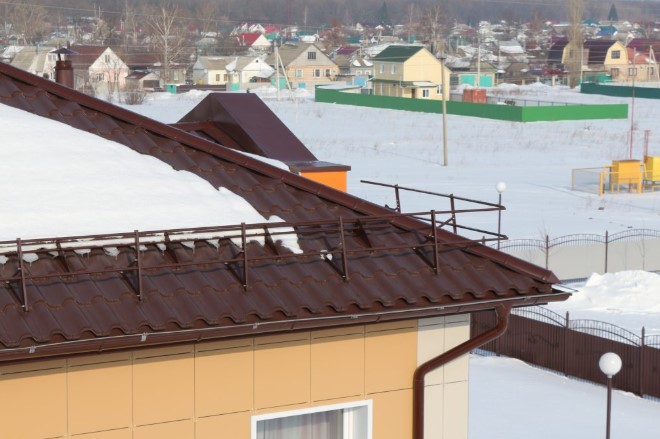 Если же крыша мягкая, то она имеет шероховатую структуру и высокую теплоизоляцию. Эти свойства выступают в качестве препятствия для схода снега. Однако, если мягкая крыша имеет слишком крутой скат, то в этом случае нужно применить дополнительную защиту. Для таких конструкций лучше всего подходят решетчатые снегозадержатели.