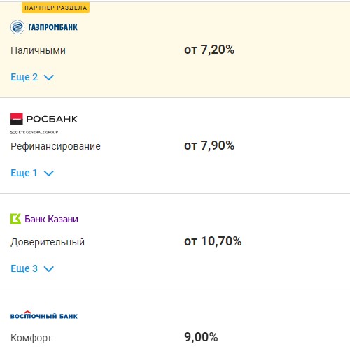 С помощью удобного агрегатора выбор осуществляется в разы быстрее. На странице представлены процентные ставки и сумма платежа, а открыв спойлер «Подробнее», посетитель портала может изучить рубрики «таблица ставок», «потребительский кредит условия», «необходимые документы» и «о банке».