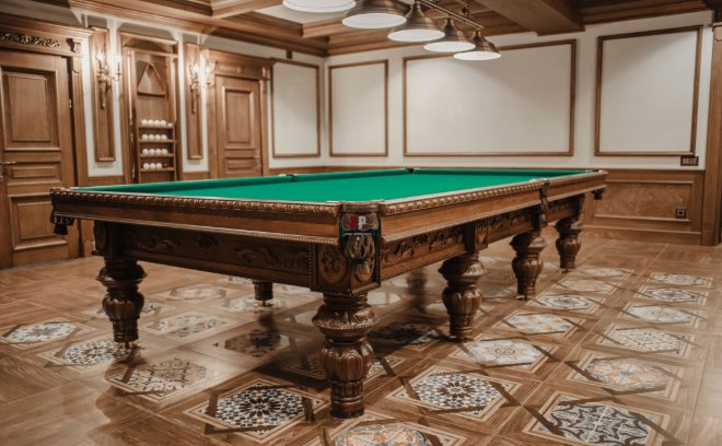 - Коллекционные бильярдные столы обычно используют в специальных помещениях для демонстрации существующих бильярдных комнат. Такого плана столы обычно массивные и стационарные, при этом помещение укомплектовано специальной тематической мебелью, что в целом создает определенный ансамбль, демонстрируются разные оттенки данного увлечения. Это классика жанра. Цена достаточно высокая, рассчитывается при формировании заказа на изготовление.