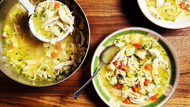 - Суп с индейкой, яичной лапшой и овощами