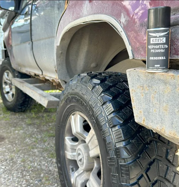 - Обрабатывайте покрышки чернителем резины. Это не только эффектно, но и полезно — состав защищает от трещин.