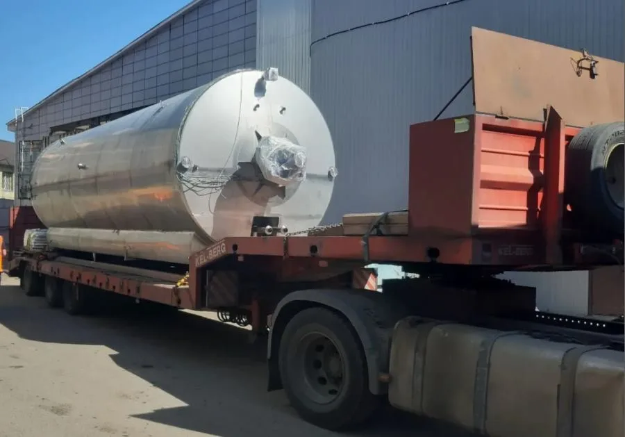 В транспортной компании «Л.Э.Т.О.» обратились с запросом на перевозку нестандартных грузов, и на этот раз нашей задачей стало транспортирование пищевого оборудования. Заказ включал в себя 4 единицы: резервуар горизонтальный стальной двустенный (РГСД) объемом 40 м³ (габариты 8,7 × 2,5 × 2,9 метра, весом 10 тонн), а также два поддона с комплектующими трубами длиной 3,5 метра. РГСД, представляющий собой молочный охладитель, был изготовлен под заказ.