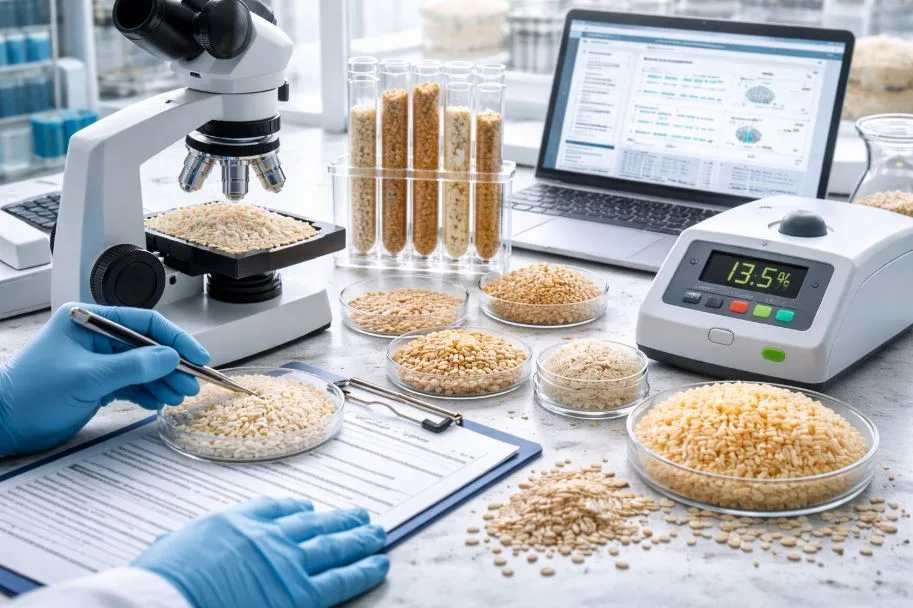 Перед экспортом партия риса может проходить лабораторные испытания на соответствие установленным показателям безопасности. Проверяются физико-химические параметры, наличие примесей и следов вредителей.