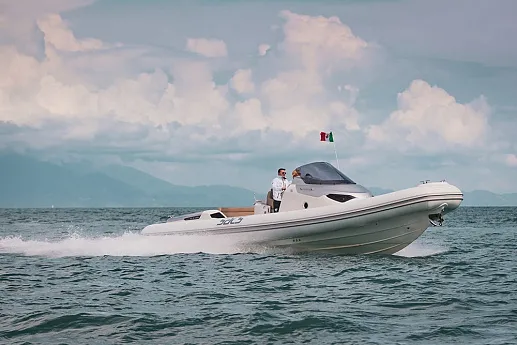 Модель линейки Strider длиной 11,5 метров, рассчитанная на 14 пассажиров, предлагает два варианта конфигурации кокпита для максимального комфорта и удобства. Первый включает кокпит с солярием — комфортной зоной для отдыха на солнце, а второй — с U-образным диваном и столом, который при необходимости также можно трансформировать в солярий.
