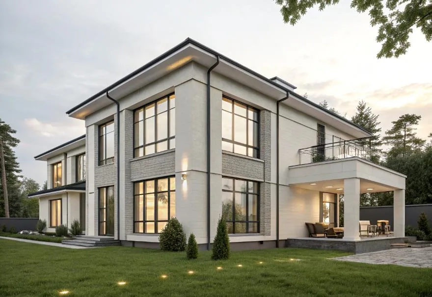 - Минимализм: четкие линии, большие окна, лаконичные формы
