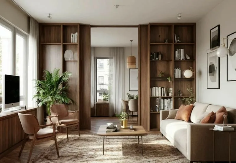 В современных квартирах, особенно в студиях и малогабаритках, необходимость разделить пространство на функциональные зоны возникает часто. Правильное зонирование решает сразу несколько задач: делает жильё более функциональным, создаёт уют для каждого члена семьи и визуально усложняет интерьер, делая его глубже и интереснее.